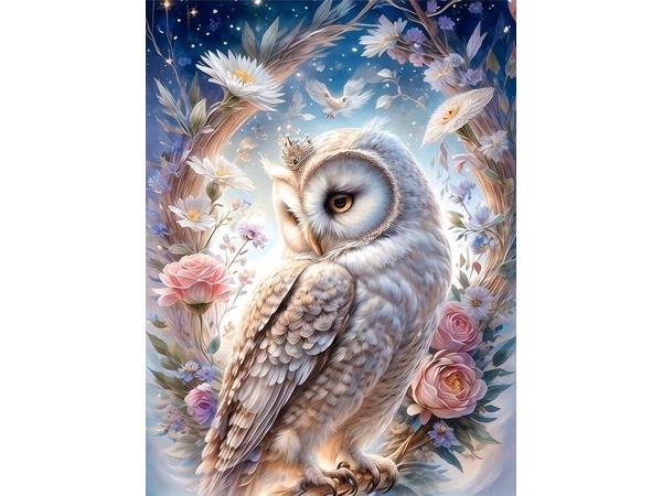 Mooie Diamond Painting Uil met rozen. Deze Diamond Painting is 50x40cm. Painting vlak is 45x35cm. Vierkante diamantjes.