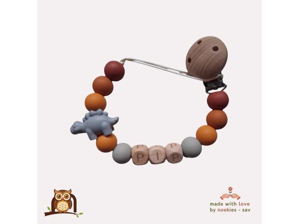 3. nr 4 noekies naam speenkoord dino grijs oranje