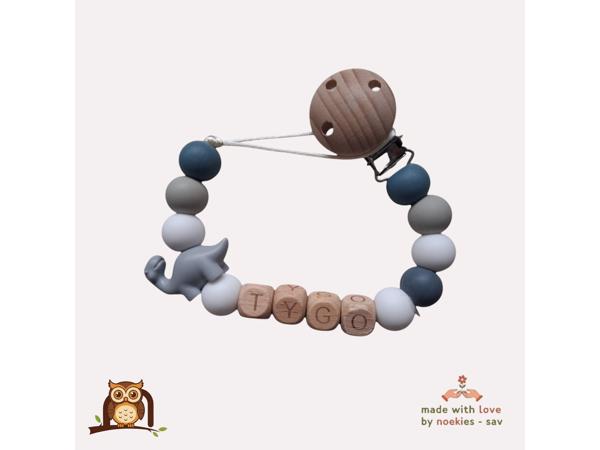 nr 4 noekies naam speenkoord dino grijs oranje