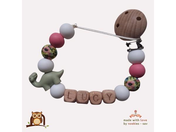 nr 7 noekies naam speenkoord dino langnek khaki roze wit blo