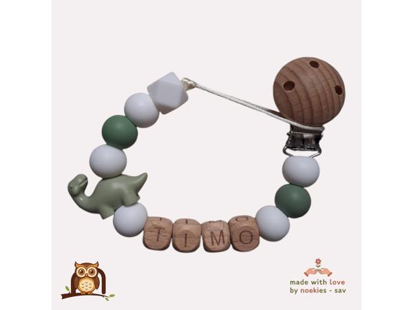 nr 5 noekies naam speenkoord dino groen blauw wit