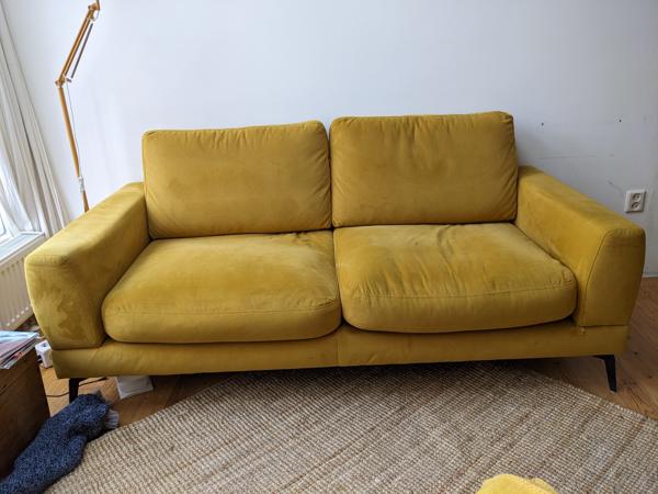 Oker twee zitsbank ,180 bij 85 ,zithoogte 38. Oker twee zitsbank ,180 bij 85 ,zithoogte 38.