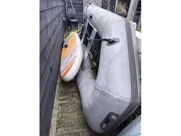Opknapper. Deze boot heeft wat liefde nodig, een goede schoonmaakbeurt en sommige plakkers moeten er opnieuw op. Hij is niet lek en heeft geen reparaties. Dus stel je geen hoge eisen, heb je water en een goed sopje dan kun je hier nog een paar jaar plezier van hebben. Boot is geschikt voor 4 personen.