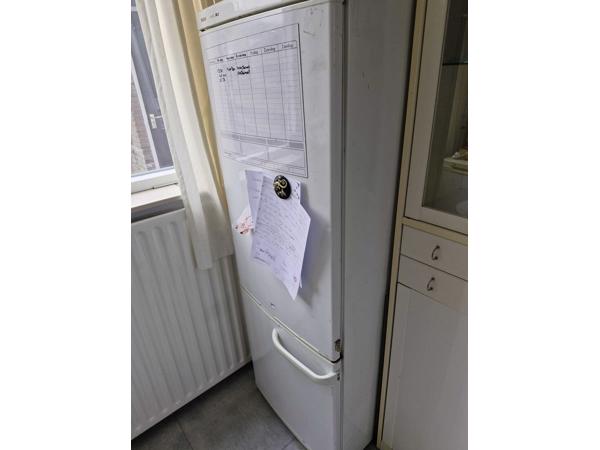 Oude koelkast, heeft geen laatjes meer in vriezer en het lampje is stuk. Werkt verder al jaren prima. Zelf uit de keuken halen.