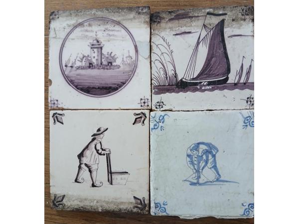 +/- 1,5 vierkante meter tegeltjes met div afbeeldingen kleur blauw / paarsig afmeting +/- 13x13 dikten varieerd van 6- 10mm Er zijn ook een aantal witjes bij. alles door elkaar voor 2 euro pst, een goed bod word in overweging genomen.
