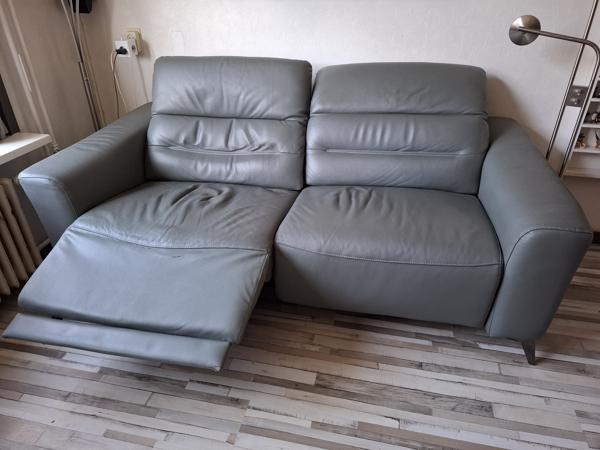 2- persoons Loungebank, met één relaxdeel aan de rechterkant. Werkt niet helemaal goed. Leer ietwat beschadigd.