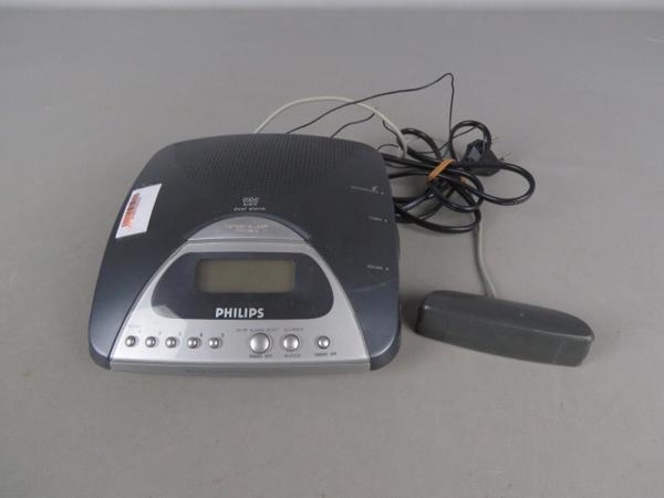 Een kunststoffen klok/wekker, meerdere alarm mogelijkheden zoals een radio station. Gemaakt door Philips. 220-230 V, 50Hz, 3W.Afmetingen: 17,5 x 17,5 x H 6,5 cm.