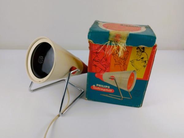 Een originele vintage infraroodlamp, Infraphil van Philips, retrolamp uit de jaren 1960 gemaakt door Philips, Nederland. Inclusief originele doos (1 isomo ontbreekt in de doos).