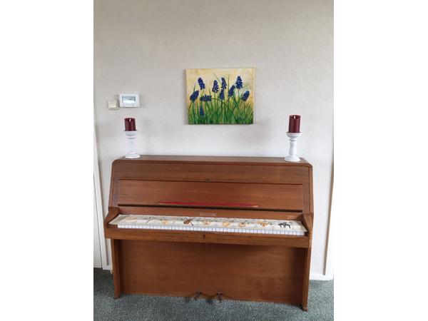 Piano in goede staat. Moet helaas weg omdat we de kamer gaan veranderen. Ook zijn de dochters het huis uit dus wordt er nauwelijks meer op gespeeld. Vandaar dat hij ook de laatste jaren niet meer gestemd is. Toch is hij absoluut niet vals! Met pijn in mijn hart moet ik afstand van hem doen. Helaas zie ik dat veel piano's gratis aangeboden worden maar deze is echt wel meer waard. Toch durf ik er niet veel voor te vragen omdat ik hoop dat iemand hem wil kopen. Dus vraag ik nu slechts €100,- voor.