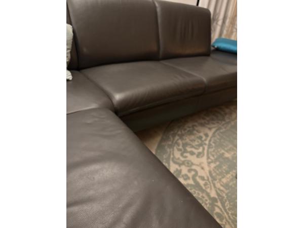 Deze hoekbank is prachtig. Past in een klassiek interieur of een modern interieur. Prachtige kleur. Bruin grijs. Heel lekker zacht leer. Onbeschadigd