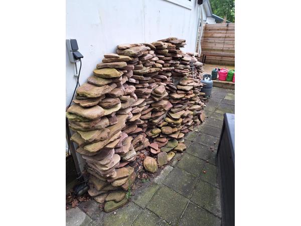 Prachtige nieuwe uit Italië afkomstige Flagstones diverse maten, prachtige dooraderde terra kleur stenen, opgetsapeld en circa 30 vierkante meter. Indien je er meer wilt er ligt nog 150 vierkante meter in ons terras, we gaan verhuizen dus dat mag er allemaal uit, wel zelf eruit halen.