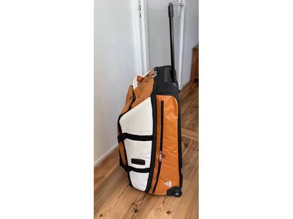 Reistrolley met 2 wielen van het merk Vaude in de kleur oranje.