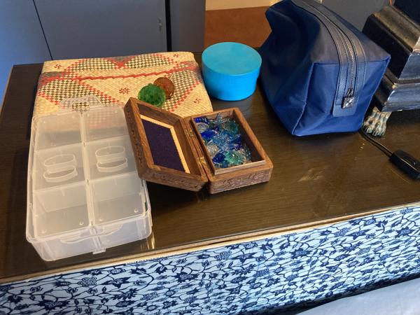 Een tas vol spullen die goed te verkopen zijn op een rommelmarkt of op koningsdag. Op de foto's enkele items zodat je een idee hebt.
