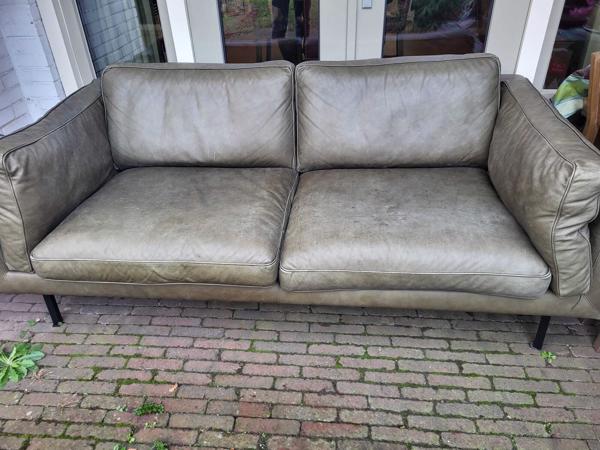 heerlijke ruime donkergroene leren bank, gebruikt maar dat maakt hem alleen maar mooier! gratis afhalen.