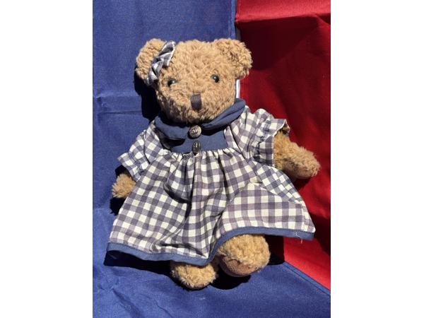 Schattig beertje met geblokt jurkje en strik 20 cm