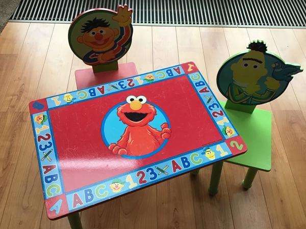 Tafeltje en twee stoeltjes van Sesamstraat.