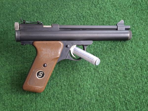 Klassiek Sheridan CO2 pistool, uiteraard in 5,0mm / .20.