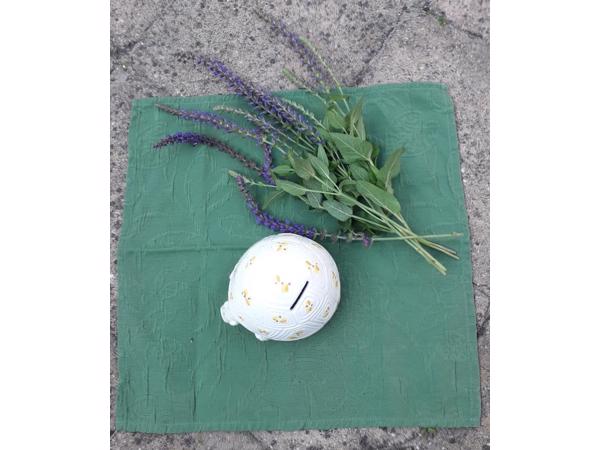 De spaarpot is van keramiek.