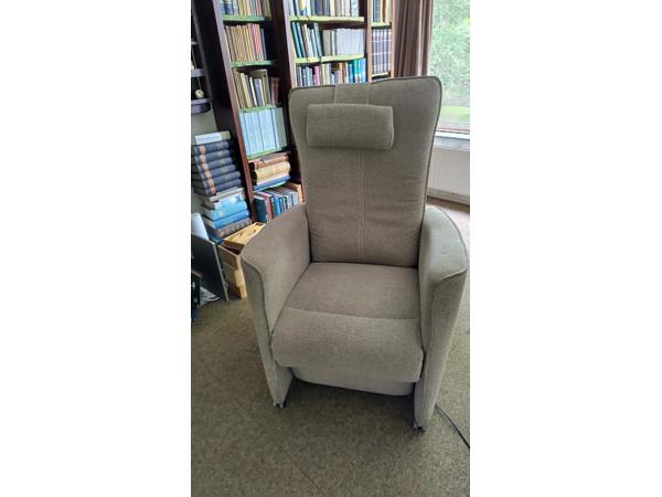 Aangeboden: gebruikte relaxfauteuil in heel goede staat Kleur: naturel gemeleerd Zitbreedte: 51 cm Zitdiepte 55 cm Zithoogte 47 cm Hoogte rugleuning: 78 cm Aantal motoren: 2 (rug / zitting en beensteun apart te bedienen) Frame: op 4 wieltjes Met lendepomp Met accu