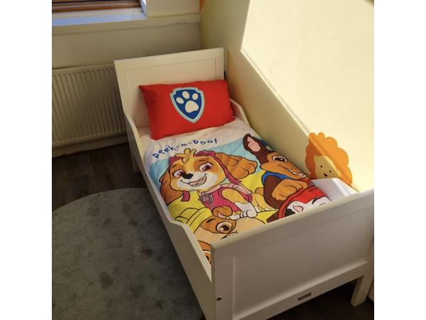 Wit juniorbed van goede kwaliteit, van gerenommeerd merk Bopita. Maat bed is 76 x 155, maat matras 70 x 150. Moet nog wel een nieuwe lattenbodem en matras voor gekocht worden. Dekbed, lakens en hoeslakens gratis erbij!