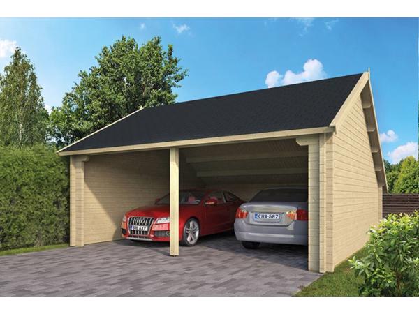 Nieuw goedkope houten carport in 70mm dik blokhutprofiel.