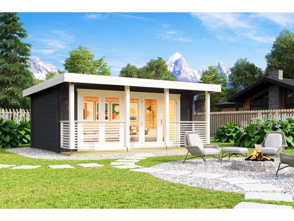 Het Tuinhuis Liverpool 1 van het merk Lasita Maja heeft 100cm oversteek aan de voorzijde en een fundamentmaat van 550cm(b) x 300cm(d). De zware 70mm dikke vurenhouten wanddelen zijn uitgevoerd met een dubbele veer en groef en een wind en waterkerende hoekverbinding. De traditionele blokhut-stapelbouw methode zorgt voor een zeer sterke en stabiele constructie. Dit prachtige moderne tuinhuis met haar 5-delige harmonica deur is bijzonder geschikt als tuinkamer, atelier of als tuinkantoor. De luxe deuren zijn uitgevoerd met isolatieglas en aluminium dorpelstrips. De horizontale latten in de terrasbalustrade geven speelse lichteffecten. Door de meegeleverde houten vloer staat het tuinhuis vrij van de ondergrond waardoor deze van binnen droog en schoon blijft. De vloerconstructie bestaat uit hogedruk geïmpregneerde onderliggers (70x45mm) en vuren vloerdelen voorzien van veer en groef (90x18mm). De vloerdelen voor buitengebruik zijn verduurzaamd door impregnatie en hebben een lichtgroene kleur. De massieve robuuste steunpalen zijn 120x120mm. Het basispakket wordt geleverd inclusief montagehandleiding, onderdelenlijst, alle benodigde bevestigingsmaterialen, deur- en raambeslag en een windankerset. Dakbedekking is optioneel bestelbaar, wij adviseren u hiervoor rubberfolie te gebruiken (EPDM). Het stapelbouw blokhut systeem is door de handige doe-het-zelver prima zelf te monteren en dit tuinhuis wordt als bouwpakket bij u thuis geleverd.