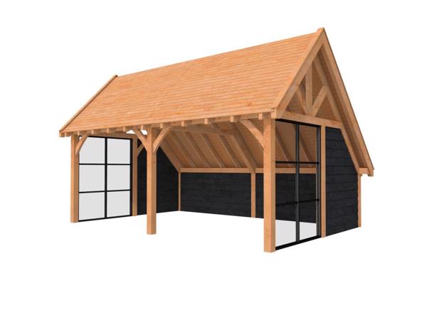 Blokhut met overkapping Olivia 385x295 + Aanbouw onbehandeld