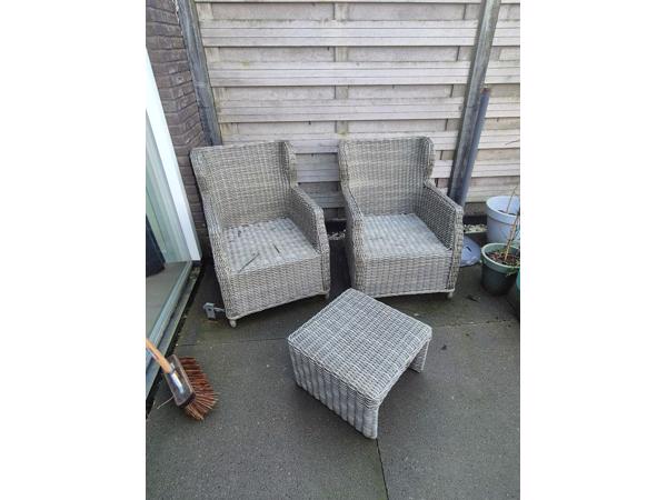 Kussens zitten er niet bij. Voeten stoeltje wel.