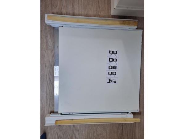 Tussenstuk om tussen droger en wasmachine te zetten om makkelijk de droger leeg te maken. Werd ook gebruikt om 'kleine' was op te vouwen. We hebben een andere droger. Deze pas helaas niet op dit tussenstuk