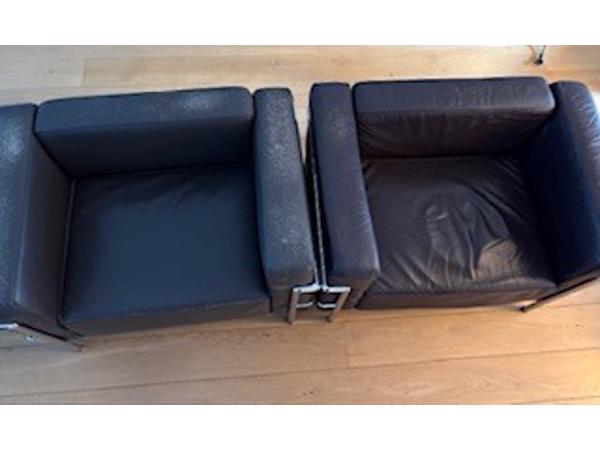 3. twee leren donderbruine stoelen met prachtig chromen frame.
