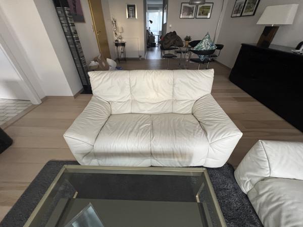 Een en tweepersoons zetel in beige leder. In zeer goede staat. Op te halen op 2e verdieping. (Lift)