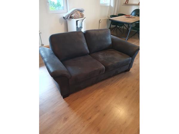 Tweezitsbankje, zitbreedte 130 cm, zitdiepte 55 cm, zithoogte 45 cm. Totale breedte 190 cm, totale diepte 95 cm Kleur donker bruin-paars-blauw. Zie foto's Minimale slijtage plekjes. Deze bank zit heel fijn, maar is nu overcompleet.