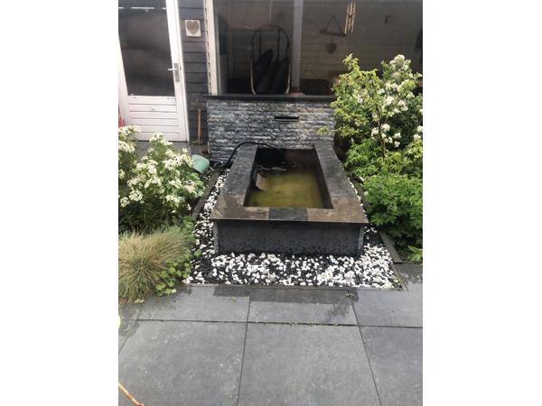 Zeer mooie zo goed als nieuwe Vijverbak met stenen.Natuursteen twv 1000 euro