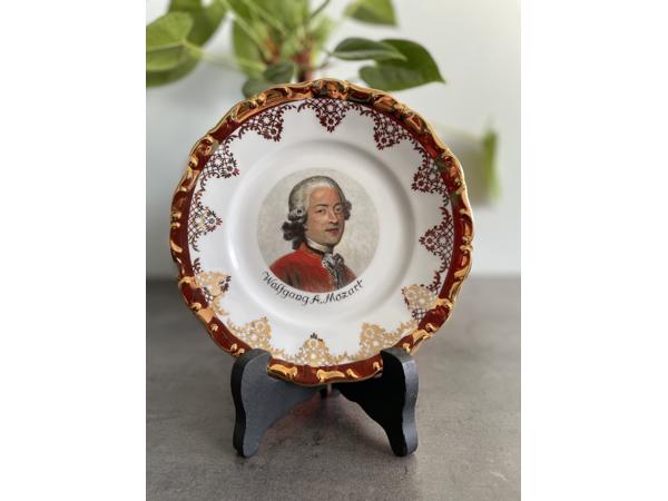 Vintage decorative porcelain plate with a portrait of Wolfgang A. Mozart. With stamp: Seltmann Weiden Germany H. Gilded with 24-karat gold. Period: 1949-1954. Diametre: 18,5 cm. For delivery, check our Vintage page: surprisewinkel