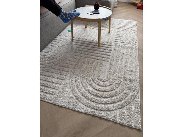 Vloerkleed japandi stijl creme kleurig. Hebben wel een hond thuis dus niet geschikt voor mensen met allergie