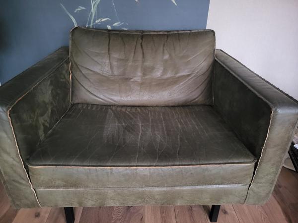 Aanbieding, gratis op te halen, een loveseat na nubucklear. 106 cm breed en 58 cm diep. Kleur: donkergroen. Circa 10 jaar oud