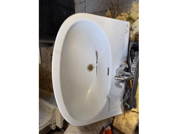 Vintage wastafel van wit porcelein. Uit de jaren 70 maar nog prima! Op de foto ligt er een beetje zand in. Is niet beschadigd.