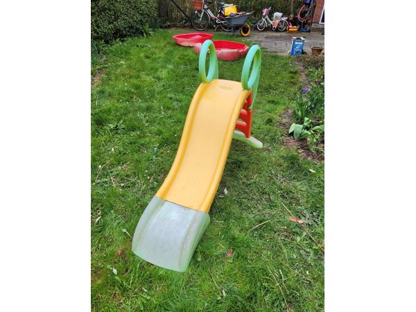 Degelijke glijbaan van Smoby voor vele uren speelplezier. In de voet zit een scheur, die hebben we dichtgemaakt met tape, maar heeft verder prima gefunctioneerd en staat stevig. Je kunt een tuinslang koppelen aan de glijbaan zodat je er een waterglijbaan van kunt maken. Ideaal voor in de zomer!