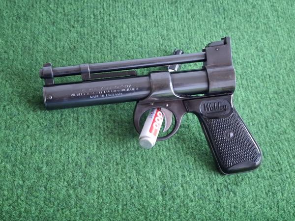 Is een paar jaar geleden voorzien van een nieuwe veer en zuigerleer (Chambers, UK) en schiet nu nog steeds krachtig (rond de 120 m/s met een RWS 0,45g / 7,0 gr wedstrijdkogeltje).