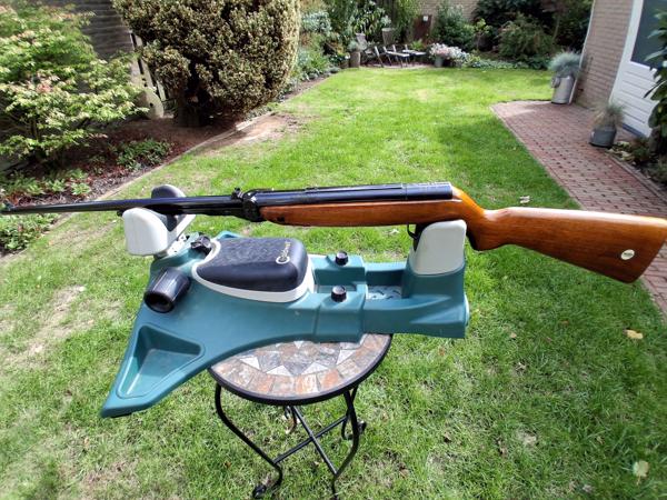 In goede staat verkerende Engelse vintage Webley Mark 3 onderspanner luchtbuks cal. 4,5 mm. Veer en zuiger vernieuwd, geen pitting of roest. Buks schiet als nieuw, ca. 217 m/s. Zeldzamerwijze heeft dit exemplaar een gladde loop, bestemd voor export. In sommige landen waren destijds luchtbuksen met gedraaide loop verboden, genummerd A3678 met de letter S (smoothbore). Niet vaak voorkomende luchtbuks, uniek voor de verzamelaar. Zie foto's.
