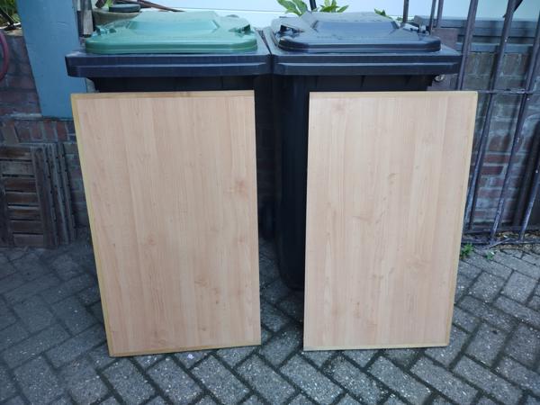 2 stuks, 3cm dik multiplex werkbladen met formica toplaag (beuken print).