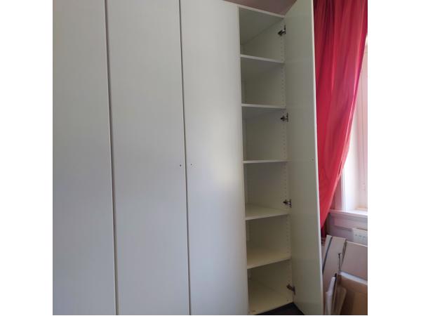 1 legkast 45 cm breed, 2,36 hoog en 57 cm diep, met 5 planken, 1 deur van 45 cm , kleur wit.