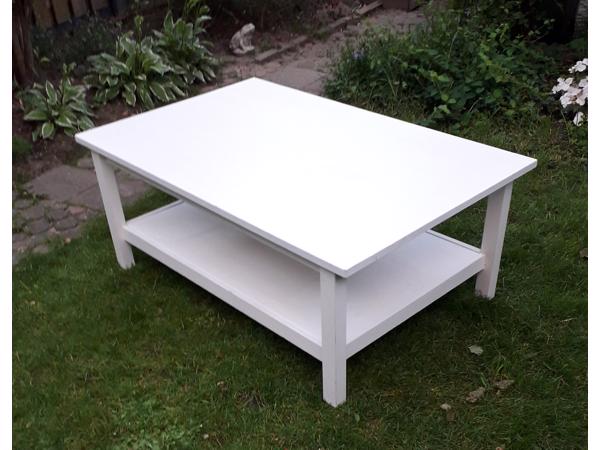 Witte, houten salontafel van Ikea, lengte 118cm, breedte 75, cm, hoogte 47 cm. Met groot onderblad voor tijdschriften etc. Hier en daar wat gebruikssporen. Kan desgewenst makkelijk overgeschilderd worden. Gratis afhalen, alleen op zondag 13 juni.