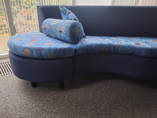 Door Jan des Bouvrie ontworpen zitgroep, bestaande uit 6 delen. Stof van de zitkussens heeft slijtageplekken.