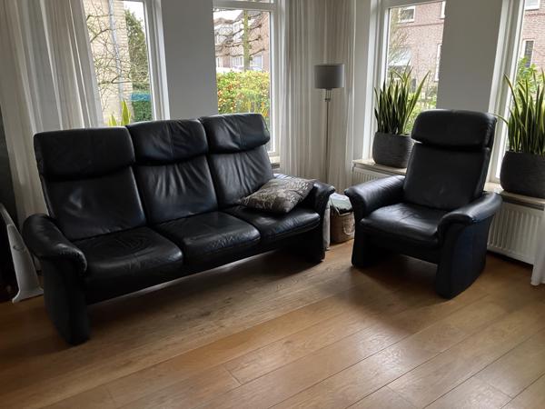 Zwart leren bankstel Zwart leren bankstel Zwart leren bankstel